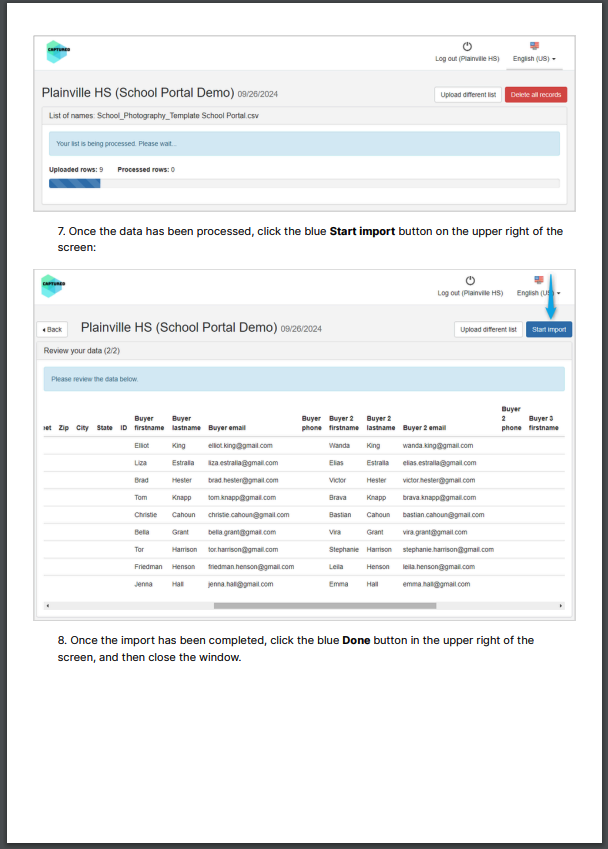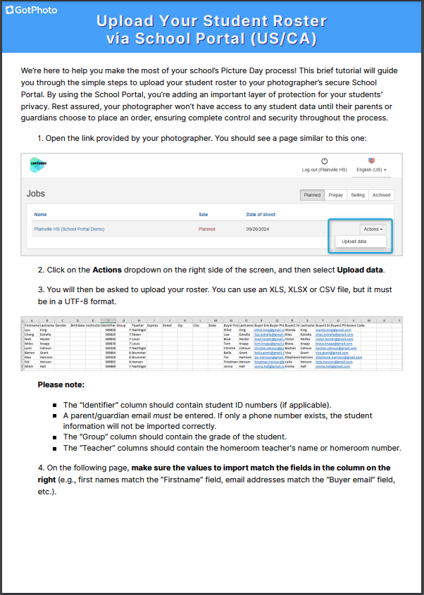 - Data must contain Student ID & Parent Names + Emails (phone numbers are not required).